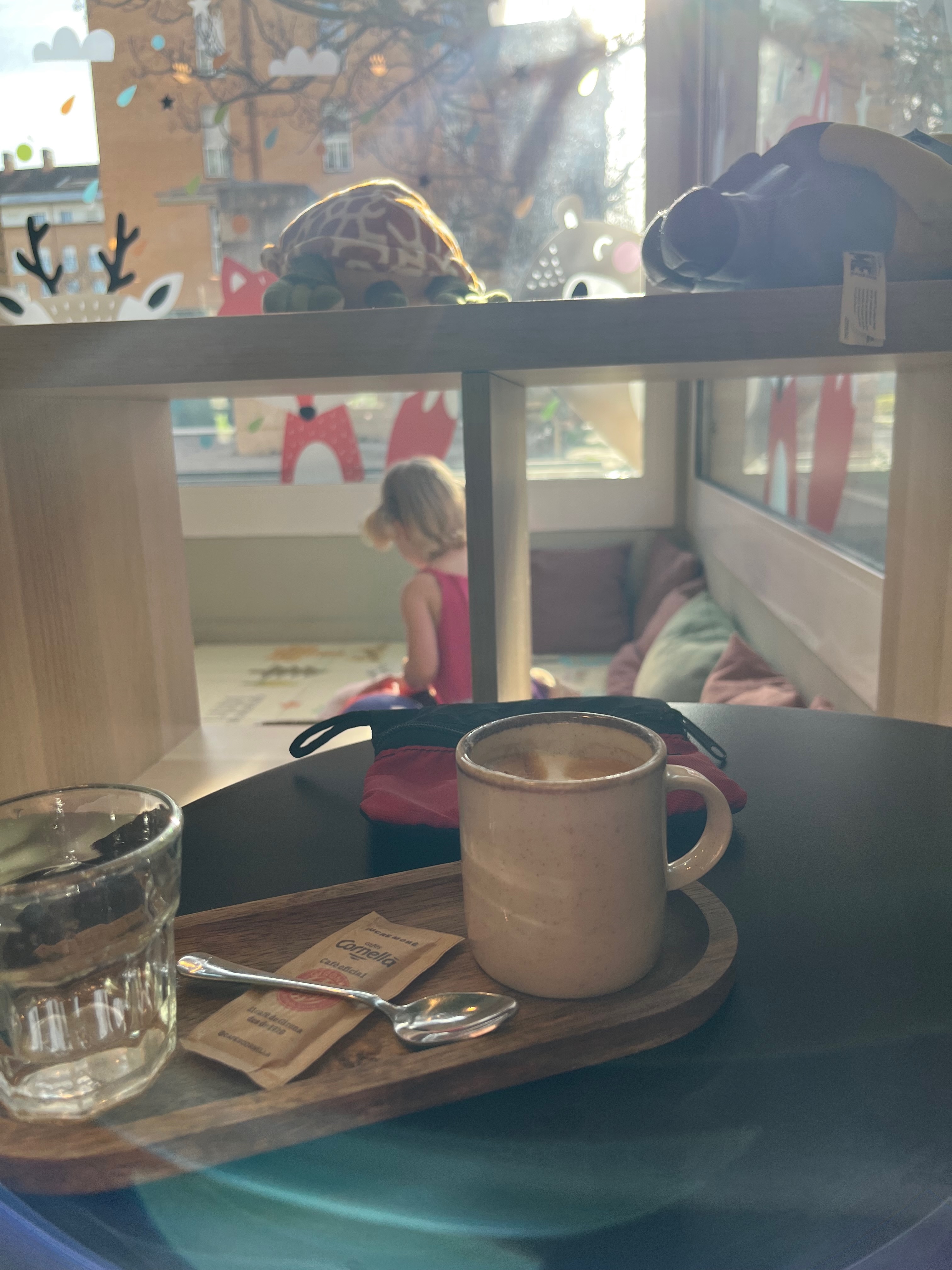 A few more concrete updates: the commute to her school includes a fun little gravel/singletrack descent on the way home! Drop off is pleasant, with kids from the littlest toddlers all the way up to high school arriving at the same time. We’re spending lots of time at playgrounds and the toy cafe, since she’s home most of the day. I love shopping in person — today I successfully found a cute little backpack for going to school and our first book in Spanish for practicing together. In “normal life” I would have bought both of these off the internet. I’m very active here, walking or biking all over town, and fueling it with sweet milky coffee and bread. Finally, I’m writing this underneath my favorite weighted blanket. Cassie fell asleep on top of me for her first siesta since arrival.